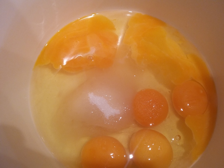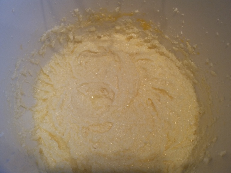 Взбить миксером 200 г маргарина, 1 стакан песка. Добавить 1 яйцо:
