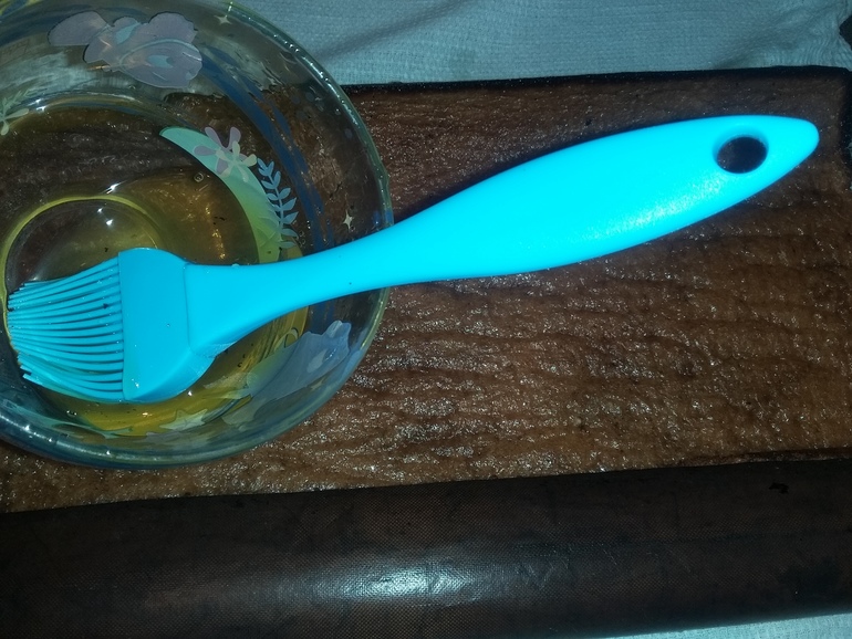 Осторожно развернуть рулет, освобождая от бумаги. Пропитать кисточкой: