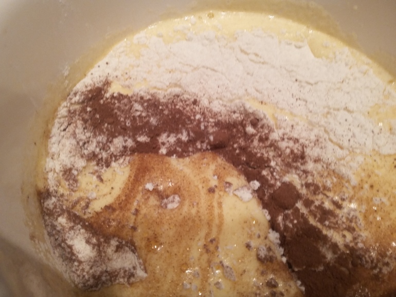 Добавить 0,5 стакана какао, 1 ч.л. разрыхлителя: