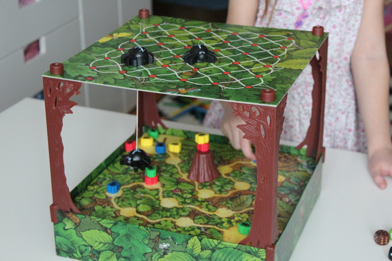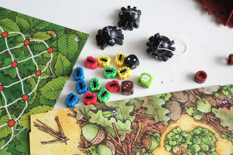 По очереди участники игры Спиндерелла (Spinderella) бросают три кубика. От выпавшего на зелёном кубике символа, зависит, передвинет игрок одного из своих муравьёв-марафонцев, разрешит порезвиться паучьей семейке или переставит в другое место пенёк. Белый кубик определяет, сколько ходов смогут сделать братья-пауки, а коричневый - на сколько делений продвинется выбранный игроком муравей.