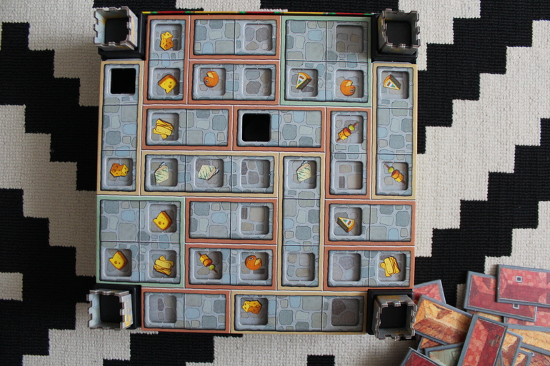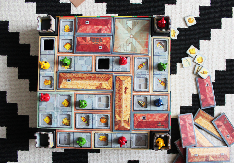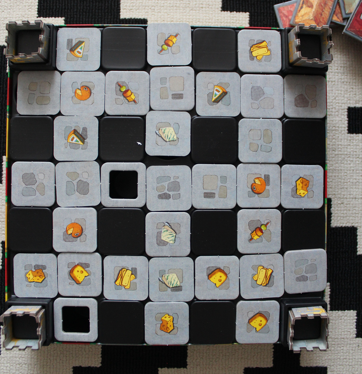 Игровое поле состоит из трёх слоёв: тайлы с изображением сыров, коридоры и крыши.