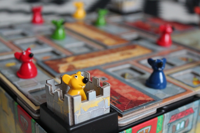 Каждый игрок ставит одного из своих мышат на любую незанятую сторожевую башню замка (расположены в углах коробки).