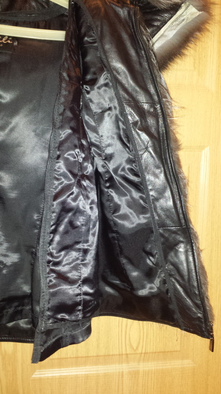Пойдет на 44-46,может чуть больше (у меня 42 и мне велика).Купили в конце сезона,почти не ходила,так как она реально большая.На подкладке ни зацепок ни затяжек.Следа от ремня нет.Хотела отдать в ателье ушить,но смысла по деньгам нет,поэтому и продаю.Рукава на молнии,подстежка из кролика отстегивается,капюшон тоже отстегивается (очень функциональная.