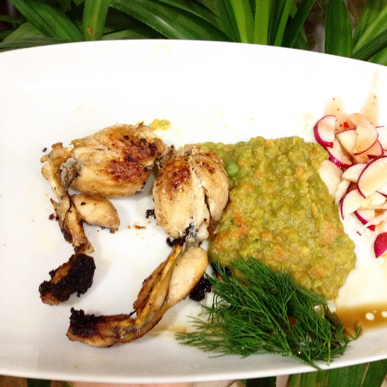 На гарнир - пюре из горошка и кукурузы свеже-замороженных.