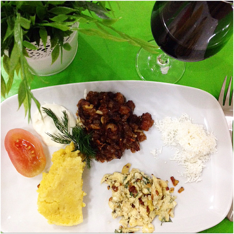 Мамалыга. (нечто среднее между кашей и хлебом из кукурузной муки).