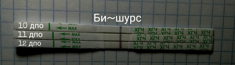 У меня на бишурсе были одинаковые полоски на 10-11-12 дпо,а на 13 дпо уже поярче стали