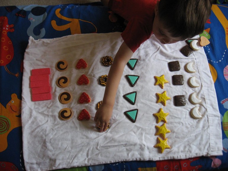 Как разнообразить игру: когда ребенок будет выбирать печенье из банки, попросите его сделать это с закрытыми глазами. Если он вытащит печенье правильной формы, пусть положит перед собой. Если нет - нужно положить его обратно в банку. Нужно только одно печенье каждой формы.