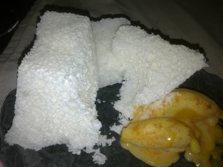 Изысканная высока кухня! Необыкновенное сочетание продуктов и удивительная подача и необычность . Например, очень потрясло увидеть фирменный десерт Белый кролик - вспененное кокосовое мороженное подается на ледяном камне с горячем фланом с морковкой.