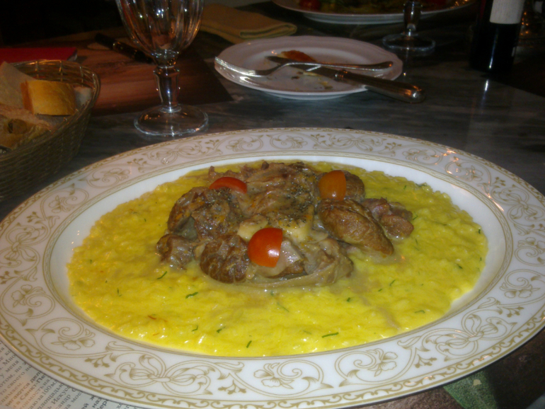 Очень вкусно готовят мясо (на фото оссобуко с шафрановым ризотто).