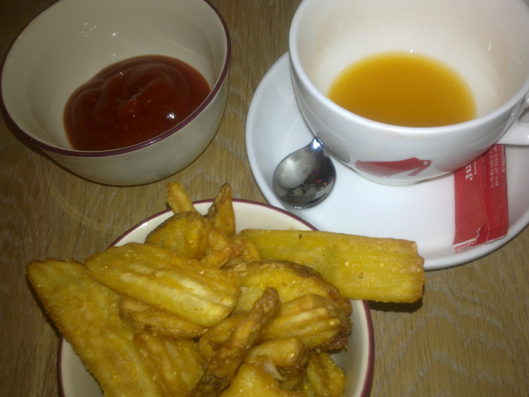Зашли в Крылья или Ножка, выпили чай облепиховый, пожевали картошку и ушли.