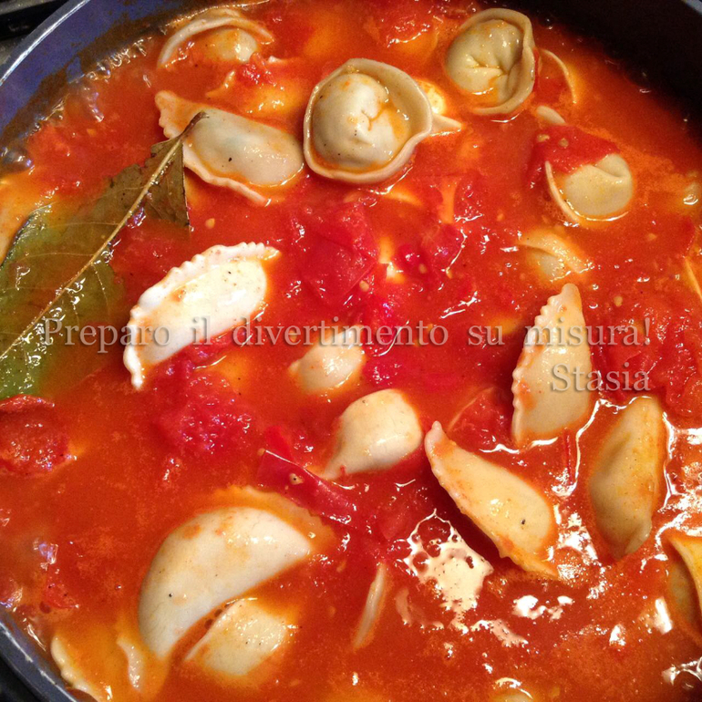 Пельмени в тушеных томатах, с Чили, чесноком и кинзой