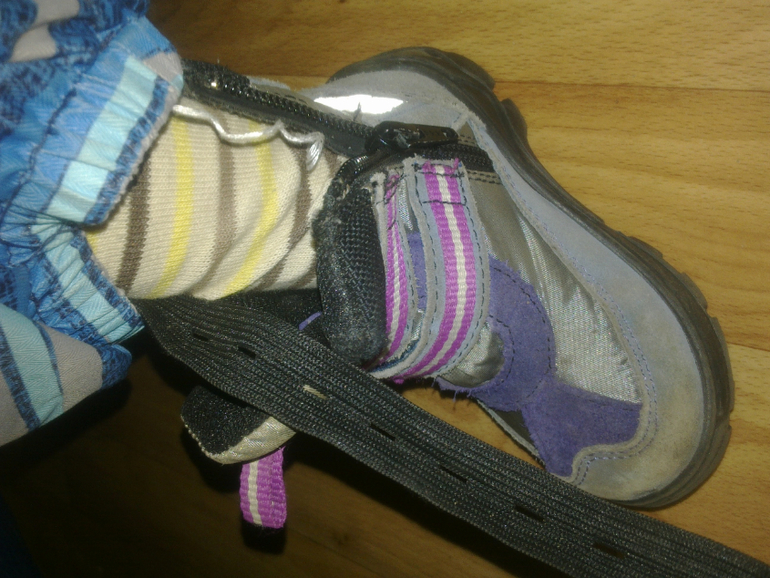 сапожки на липучках застегнуты самим ребенком вижу, но молния на обоих сапожках застегнута на половину (она тугая, ребенок сам ее не может застегнуть/расстегнуть)