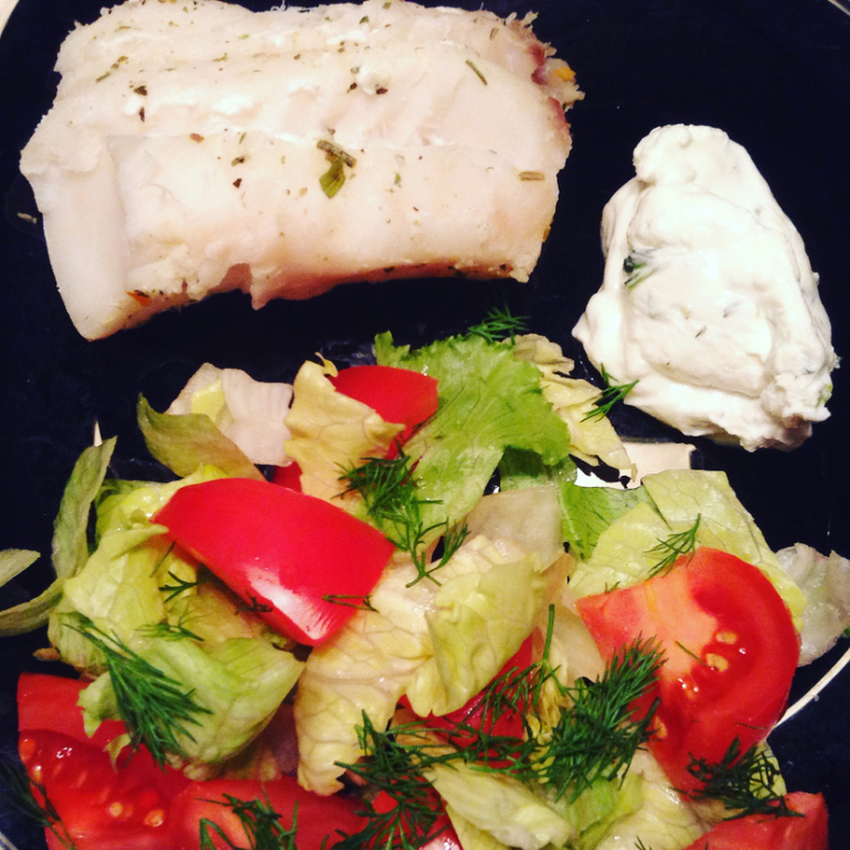 паровая треска с йогуртовым соусом с кинзой