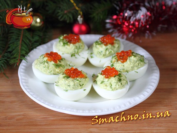 яйца 4-5 шт., авокадо и/или сливочное масло, красная икра