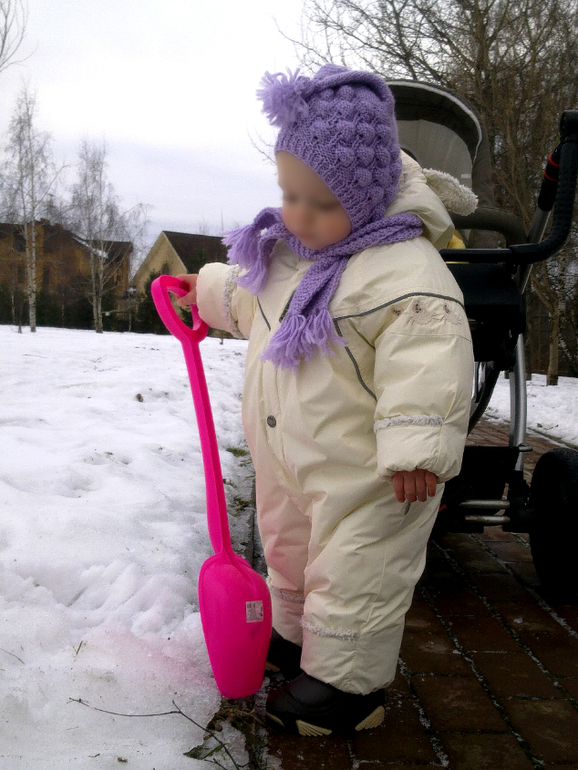 На комбезе пришит размер 68, носили его пока лежали в коляске с 65 см, и может неделю успели в нем потопать ножками, когда только начали ходить.