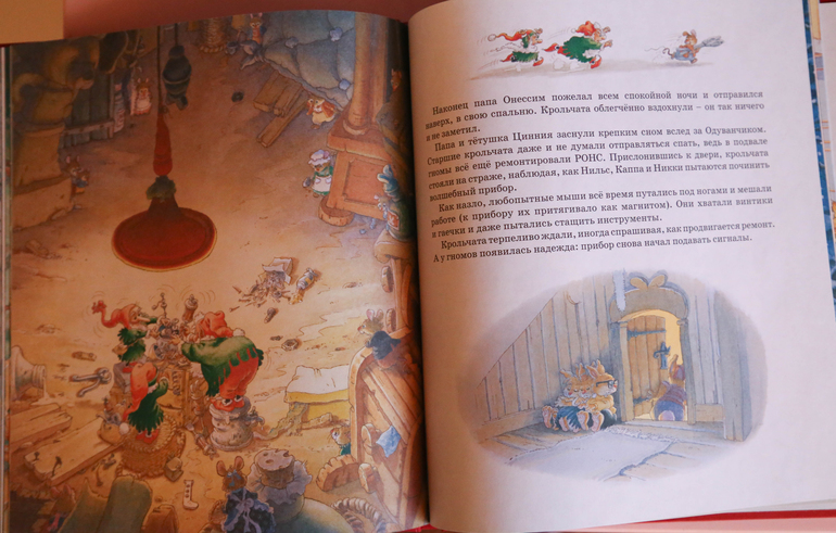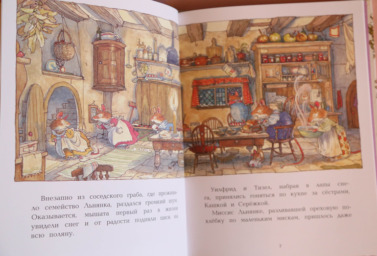 Покупалось из-за Вариной любви к мышам. И правда мыши тут очаровательны! Целый мышиный мир, мышиные приключения и все они такие красивые))) Минусом являются их имена, вернее фамилии. Они совершенно неудобны с точки зрения русского языка! Мистер Яблочный и миссис Яблочная пошли туда-то... Гораздо лучше было бы, если бы их просто называли по именам и при этом разным именам, а не таким заковыристым фамилиям. Язык повествования тоже для детей чуть по-старше, все таки тут более сложные (т.е. для ребенка скучные) обороты речи. Мне кажется, что эта книга нам на следующий год только. Хотя посмотрим, может Варя проникнется)
