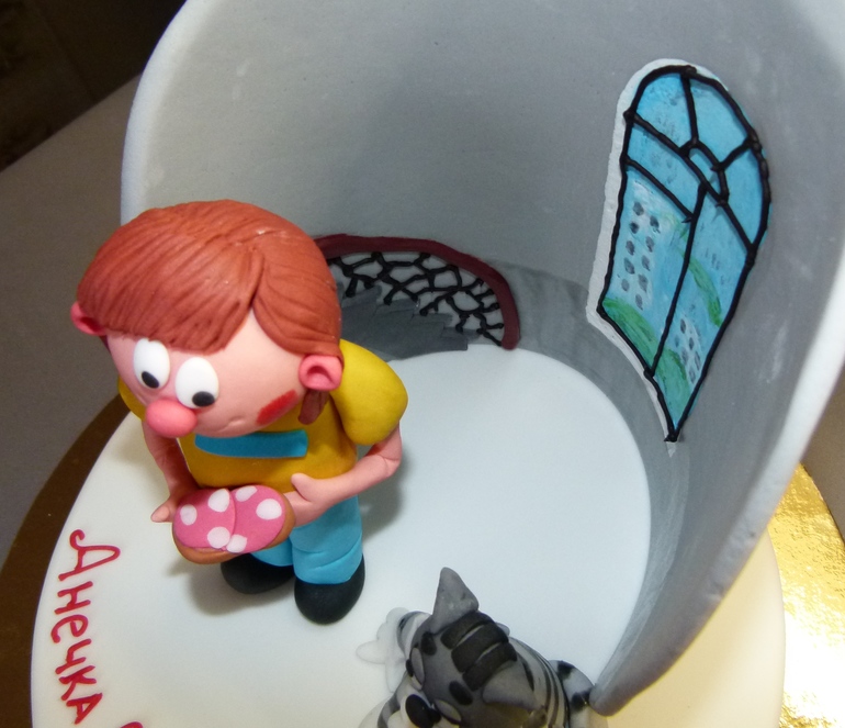Уф, неделька выдалась, сплошное печенье и домики, и тут между ними протиснулся торт, ну как откажешь подружке ? ! сюжет конечно замучал, спасибо всем кто откликнулся на призывы о помощи. в итого получилось вот что . из-за большой нехватки времени стенку недосушила и убрала подальше что б утром сонный муж ее не опрокинул. в итоге-слезы, стала уже чем должна быть, а на переделку уже времени не оставалось. торт понравился , но я то знаю что это косяк!