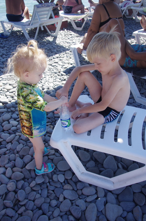 Кир в основном плескался на мелководье. Похоже дети в меня, не особые любители плавать :(