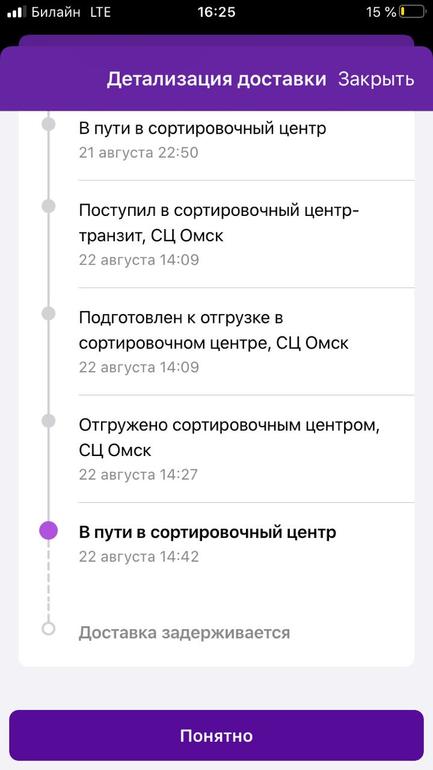 У меня как то тоже уехала в Челябинск но до меня так не доехала 🤷♀️Потом писала чтобы деньги вернули