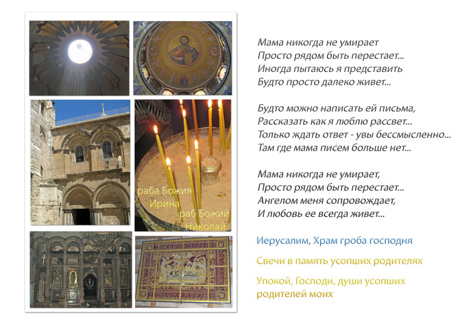12. Сделала такую открыточку. Я мечтала поставить свечи за своих родителей именно в этом храме. Мамы нет со мной с 21.11.2012 г.