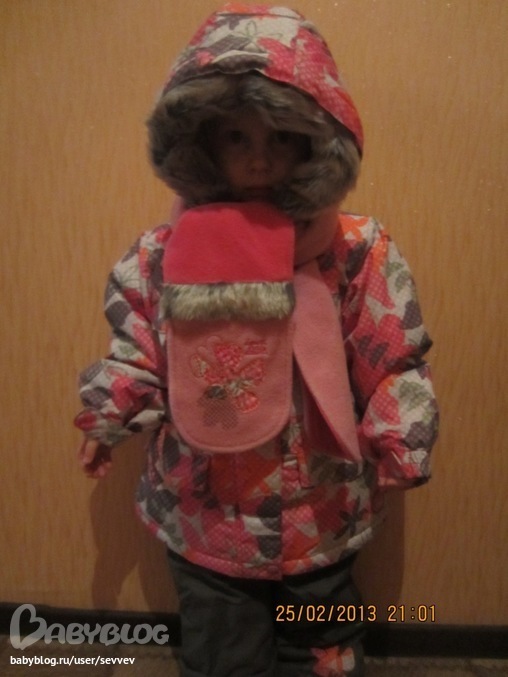 НО... есть это но все же ))) Хапнула я размер 4 года (104 см). Сейчас дочке 2,10 года, рост 93 см, вес 12 кг всего - худышка. Так вот мы в нем конкретно притонули ))) Еще конечно год целый впереди, доча подрастет, но переживаю дорастет ли? Или все же большой он нам будет в следующий сезон???