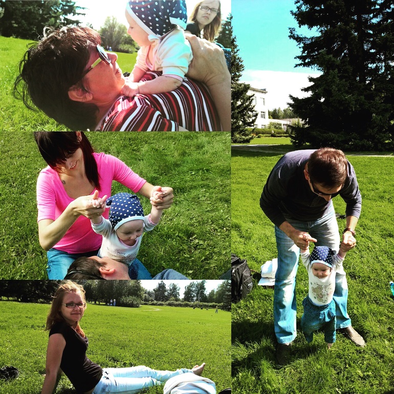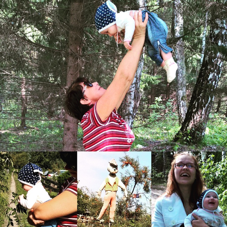 Еваза кучу времени) вчера Еве было пол месяца, а моей лучшей подруге исполнилось 22)) шикарно посидели, отпраздновали, выпили шампанского, подруга осталась ночевать, а сегодня вышли с ней и Евой прогуляться на пол часика по округе и внезапно оказались в ботаническом саду) по дороге туда заплутали в дачах, встретили волшебника-таксиста, чудом оказавшегося в этих ебенях (зачеркнуто) местах, который наконец то довез нас за 5 км до ботсада.)) повалялись на травке, пофотографировались, Ева надышалась воздухом так что совсем ошалела - в общем было здорово))