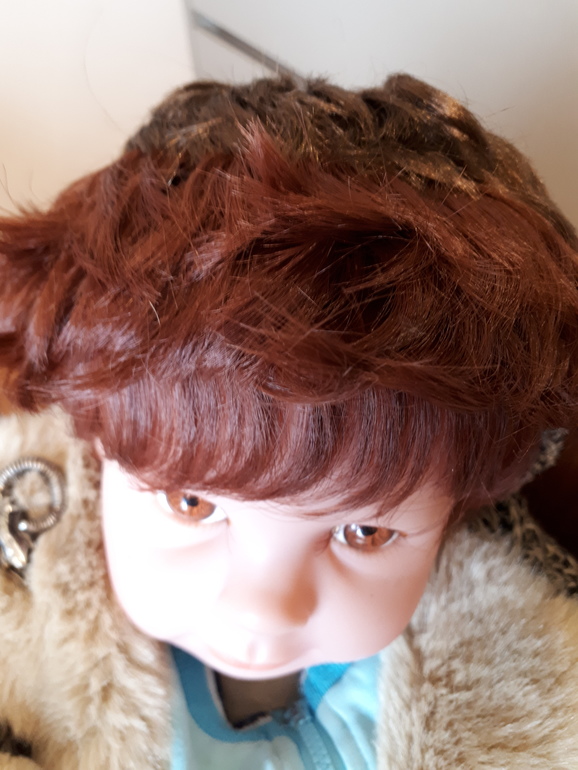 Это окончательный вариант. Цвет парика и основной цвет волос сильно отличаются. Переделывать уже не буду, и так наш парень полгода в платочке проходил