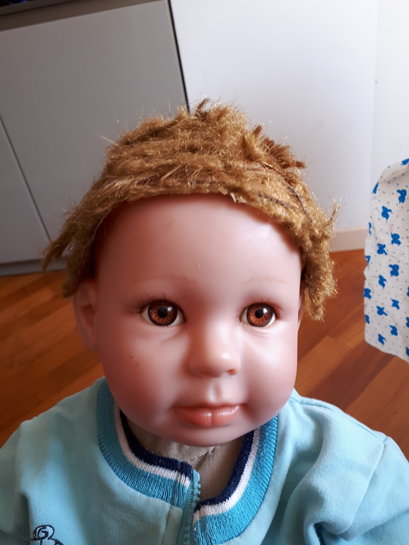 РукоделиеВсем доброго дня!У одной замечательной девочки есть кукла , доставшаяся в наследство от старшего брата. Прическа у куклы пришла в ужасное состояние, и не мудрено.... ведь Вове ( назвали мы его так) уже очень много лет Было так
