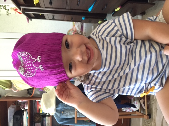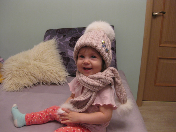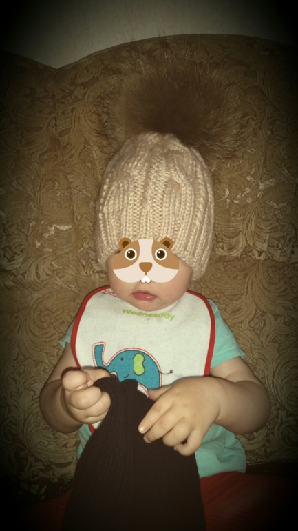 и мамину заодно продемонстрируем ) и в ручках мамину шапочку подержим))