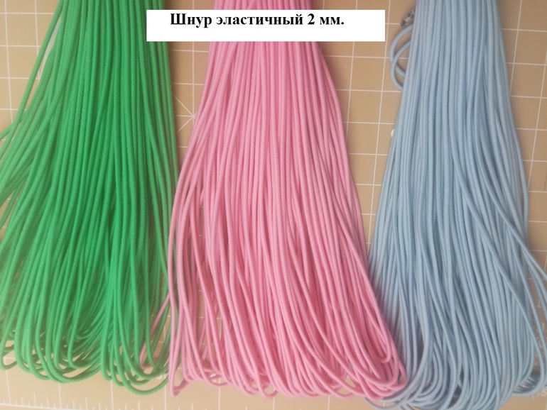 - Шнур эластичный Шляпная резинка 2 мм. на отрез (розовая, зеленая, голубая).