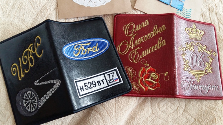Обложка на паспорт "Женат. Серебро на синем", авторская работа, экокожа, 950руб. Эффектная "говорящая" вещица, которая отлично подойдет в качестве подарка как для молодоженов, так и на любую годовщину свадьбы. Можно вышить комплект обложек для семейной пары "Женат-Замужем", добавить имена-инициалы, дату свадьбы (добавление персонализации на стоимость НЕ влияет!). Вещица в упаковке, можно сразу дарить. Курьер по Москве (200 или 400руб.), ПОЧТА (90-120руб.), самовывоз мкр. Сходня (Химки).