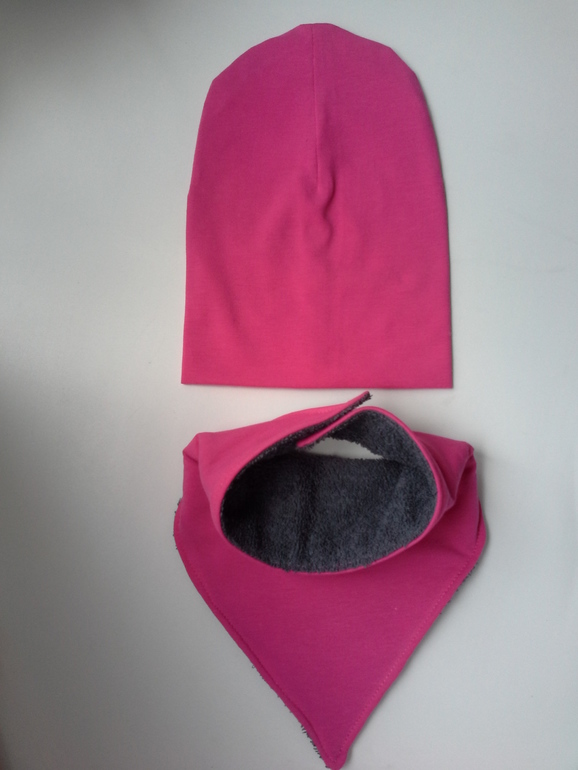 Из последнего для самой маленкой моей заказщицы - 2 месячной малышке комплект из трикотажа и мохры шапочка и бандана, вместо снуда .