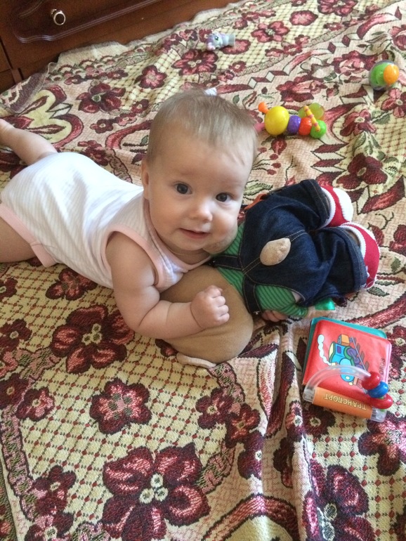 Все она умеет моя умничка, и сидит, и ползает, и на ножки встает. Кушаем в основном грудь, из прикорма фрукты в ниблере, рисовая каша беби, бублики любит погрызть деснами. Зубов нет. Овощи не нравятся. Очень ласковая и тактильная девочка, питается объятиями и поцелуями, а я и рада. Алисонька была более независимым малышом. Позже напишу подробно не с телефона. И немного фото моей звездочки.