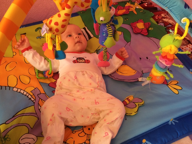 Ну что сказать, растем. Немного беспокоит животик, немного цветет, но в целом все хорошо. Наела себе немаленькие щечки, прибавка за месяц 800 грамм, из 56 размера вырастает. Боли уже не застегиваются. Много кушает, мы полностью на гв, ночью просыпается 1-2 раза, гуляем не меньше 2 часов. Беспокоят глазки, сильно закисают, не помогает пока ни левомицетин, не промывание чаем или ромашкой. Пойдем на днях к окулисту. Талончик на все узи тоже дали.