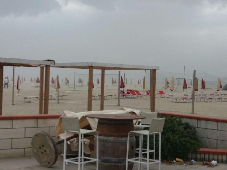 Погода, как назло, была чудна'я: то дождь, то ураган! Один раз попали мы в настоящую бурю. Ощущения, скажу я вам, малоприятные, если не больше... даже были пострадавшие. А начиналось все довольно невинно: собирался дождь, черная туча нависла над горизонтом, в какой-то момент стало понятно, что гроза неминуема, а мы сидели в это время в баре на пляже и довольно далеко от наших лежаков. Я решила, что от греха подальше, надо собрать вещички и переждать дождь под крышей кафе. Как только мы подошли к нашим кроваткам, поднялся ураганный ветер страшной силы, смешал воздух с песком, и видимость стала близкой к нулю. В общем, мы чудом успели собрать одежду, воюя с ветром, бегали и догоняли купальники с полотенцами))) ветер только усиливался и сбивал с ног... а потом он совсем озверел и стал выдергивать зонты из песка и швырять их во все стороны. Девочки, это была настоящая жуть. Слава богу, дочка была в кафе и не успела испугаться. В итоге мы еле-еле ушли с пляжа, нас просто валило с ног. Песок был везде: в глазах, в носу, скрипел на зубах. Один из этих летающих зонтов ударил молоденькую девушку по голове и носу... обошлось только ушибом... а дождь так и не пошел))) капнуло пару капель и все...