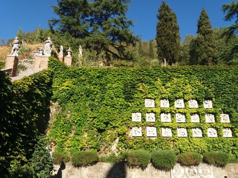 Сразу от замка идет дорожка на верхушку холма. По дороге к вершине построены в линию семь маленьких церквушек, каждая из которых посвящена какому-то святому. И на самом верху находится вилла семьи Дуодо и небольшая церковь, комплекс построился в 16-17 вв с помощью знаменитого архитектора Винченцо Скамоцци.