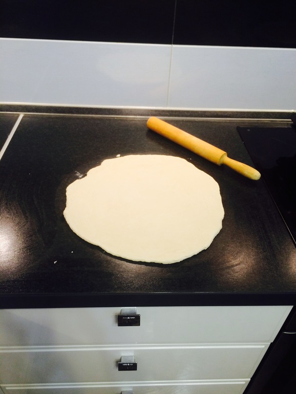 Мука вола, соль. Все смешать и раскатать в пласт толщиной в 0,5 см. Ориентируемся на размер мяса, чтобы хватило краев для защипов теста.