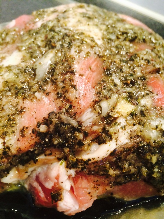 Все в одной мисочке перемешать и нанести на мясо, со всех сторон. И оставить на минимум 5 часов. Я ставлю на сутки, когда как. В холодильник.