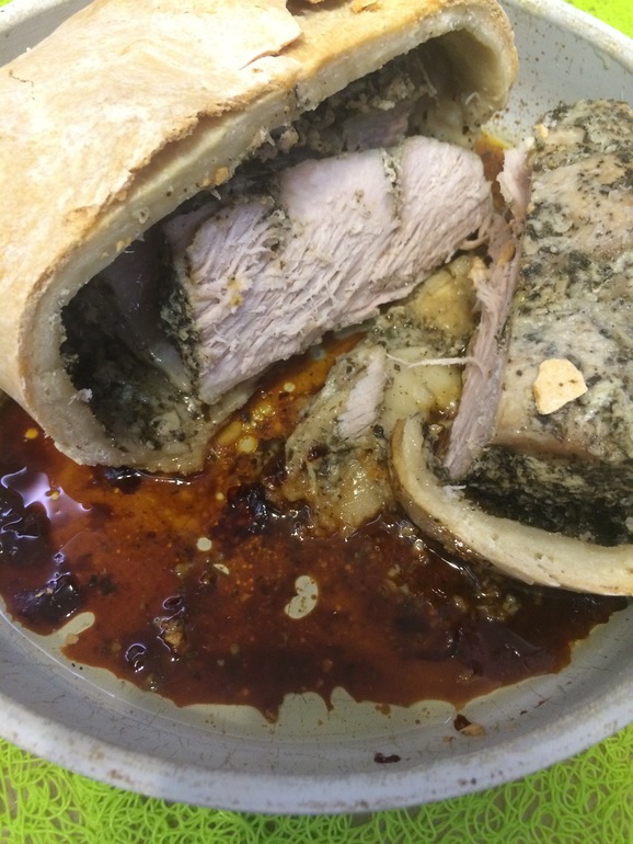 Включаем духовку на 220-240 гр и запекаем в течении 30 мин. Смысл в том, чтобы тесто схватилось. И не размокло от сока. Внутри его будет много, и он очень вкусный, поэтому его стараемся не растерять при выпечке. Потом убавляем на 150-170 и запекаем ещё час, полтора. У кого какая духовка. Я люблю потомить на подольше но , на не большой температуре. Получается настоящий карбонат.