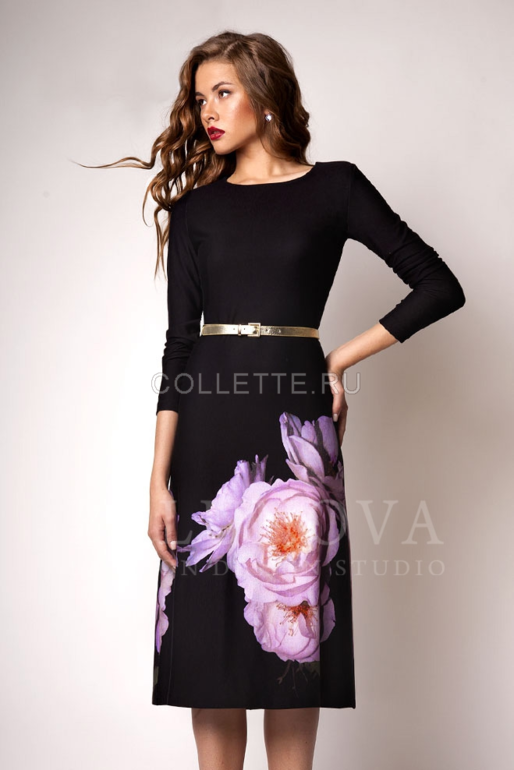 Блуза полуприлегающего силуэта с цельнокроеным рукавом. По талии проходит пояс, декорированный металлической фурнитурой (пояс входит в комплект).
