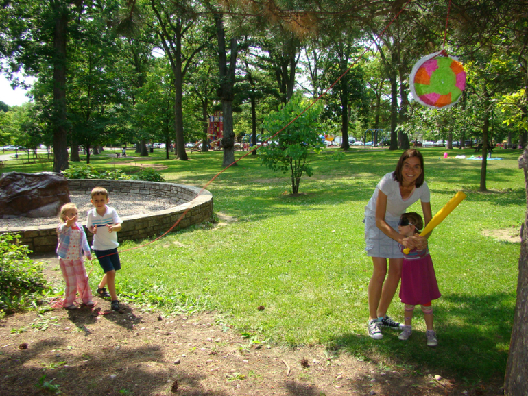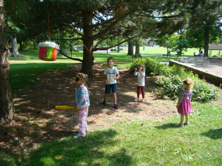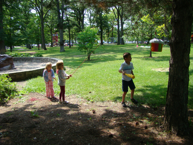 Навык выбивания пыли из ковров оказался как нельзя кстати. Из чего их только делают! Дети выдохлись, но так и не разбили. Пришлось вспомнить про ковры))) и прийти на помощь.