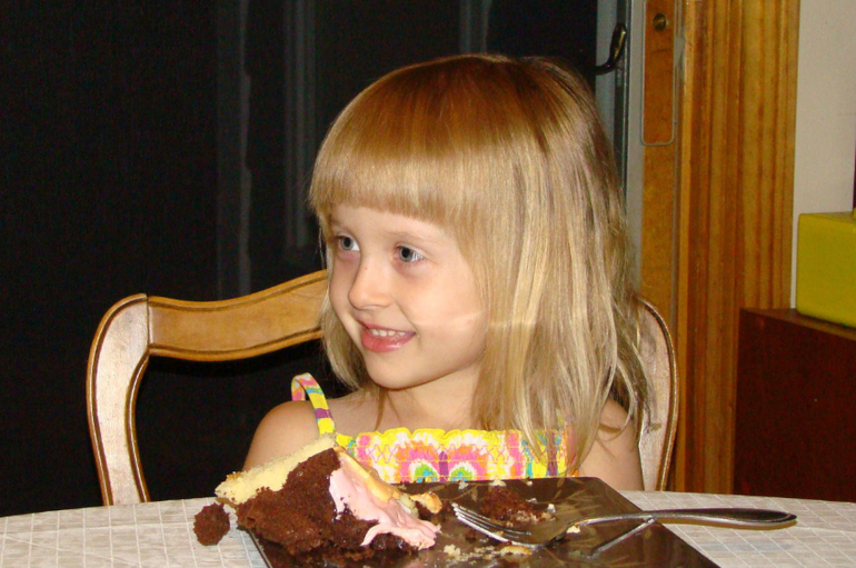 праздникиИтак, нашей девочке уже 4. Когда мне было четыре, у меня родился брат, и я стала старшей сестрой. Пирожок очень сообразителная девочка, которая почти ни в чем не уступает своему старшему брату, а по некоторым пунктам развития даже обгоняет его))). Что забавно и немного пугает одновременно. И если за Сашей нужно жандармом ходить "пошли заниматься", то Пирожок сама за мамой хвостом ходит "пошли делать домашнее задание". На следующий день были на приеме у педиатра, где нам не сказали ничего нового: худенькая и длинная, развивается хорошо, и снова придрались к номам потребления молочных продуктов (будто есть больше нечего))). Немного дичится чужих, но при грамотном подходе быстро осваевается. В день своего рождения получила от бабушки посылку. Прочитала свое имя и необыкновенно обрадовалась, что ей лично пришла почта. Мы ее потом спросили, почему ей бабушка посылку прислала. На что она ответила, потому что я хорошая девочка. Мы рассмеялись, но бабушка же не санта-клаус. "Ах, да, еще у меня сегодня день рождения,"- растянулся в улыбке Пирожок. С днем рождения, дорогая моя девочка))).