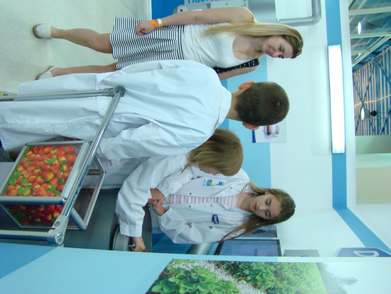 Для тех, кто не в курсе: по периметру большого зала, декорированного под улицу, расположены тематические комнаты (банк, суд, больница, магазин, фабрика, салон красоты и т.д.). В каждом "учереждении" есть инструктор, который рассказывает детям, что входит в обязанности сотрудника, который нанимается в данное учереждение, процесс производства или услуги, после чего "нанимает" детвору на работу и дает им задание. Например, чтобы произвести йогурт сначала бежим на ферму за молоком и фруктами, потом шаг за шагом проходим (условно, конечно)) все этапы обработки молока и фруктов до выпуска пластикового стаканчика с йогуртом, нажимая всякие кнопочки и рычажки, относим йогурт в магазин, после чего получаем зарплату и идем наниматься в следующее угодное учереждение. Пожарники ездят на пожарной машине на инспекцию, полиция ловит преступника, телевизионщики берут интервью и т.д. Потом определенную сумму сбережений можно потратить на настоящую пиццу или покататься на машинках. На самую крупную сумму заработка можно стать пилотом самолета. В американских детских музеях обычно есть просто тематические комнаты без инструктажа, где дети сами себя развлекают на свое усмотрение. А здесь и профессии, и технологии, и заработок, и сбережения. Для детей по-старше намного интереснее, чем просто делать кукле уколы или ходить с тележкой, собирая в нее пластиковые овощи.