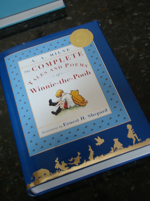 Нам по-наследству достались игрушки. И все у меня руки не доходили перебрать коробки и отобрать, что по возрасту подходит. Добралась. Да, какой клад отрыла: полное собрание Винни-Пуха, с оригинальными иллюстрациями, да еще и цветными! Я уже давно хотела Винни-Пуха в нашу детскую библиотеку. В детстве мне его не читали, но чутье подсказывало, что книга стоящая. Боже мой, какая прелесть!!!! Я в восторге от языка и изложения. Так интересно сравнивать с советским мультфильмом))). Истории достаточно объемные, но лексика доступная - Саша жует за обе щеки, а я давно не была в таком восторге от книги!))) (для сказок на английском - очень рекомендую!)
