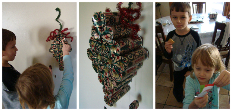Дальше будет еще один "почти календарь", домик из трубочек с записками от деда Мороза.