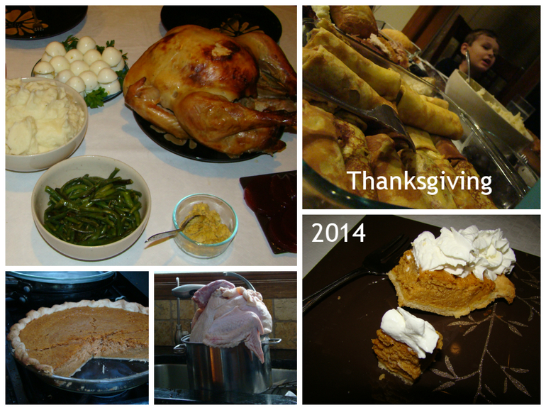 Утром по телевизору традиционный парад воздушных шаров Мейсис в Нью-Йорке, с оркестрами, песнями, бродвейскими постановками и прочими шоу. Почти как наши праздничные концерты, только на свежем воздухе))). Первая половина дня за компьютером (работа превыше всего! и как хорошо, что в этом году праздник прошел в узком кругу, без толпы гостей и горы явств), вторая - на кухне. Индюк, пюре, стручковая фасоль, клюквенный соус к птице. Индюка запекала в неплотно прикрытой фольге - ожидания оправдались. Получилось и быстрее, и сочнее, и с хрустящей корочкой. Вместо традиционной хлебной начинки с потрохами и травами - фаршированные яйца. От себя еще блинчики со шпинатом-грибами-сыром - мое изобретение, которым я так люблю почивать своих друзей. На дессерт традиционный тыквенный пирог со сливками. И никаких "салатиков" под майонезом. Вечером, уже третий год (так что, можно сказать, традиционно) турнир самодельных катапульт, метающих тыквы. На следующий день Черная пятница - день шопоголика))) и начало рождественнских распродаж. Я в первый год своего пребывания как-то попала в самый эпицентр этого события. И не зная о происходящем, подумала, что мир сошел с ума)). После этого опыта черная пятница проходит дома, подальше от всеобщего сумашествия. Улицы украшают к Рождеству. Всюду гирлянды, огни, елки. У дверей супермаркетов, наряженные в санта-клаусов люди, звенящие в колокчики, собирающие пожертвования нуждающимся. Каждые выходные полнометражные мультфильмы. Бесконечные рекламы игрушек. И ожидание снега, как рождественского чуда. Happy Thanksgiving, America!
