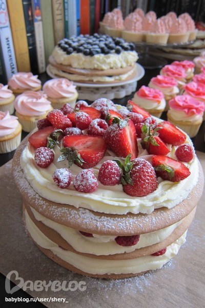 Девушка Юлия, так что вам по ссылке, у нее есть и рецептики, если поискать.. а так на вид песочные коржи и крем с маскарпоне и сливками.??.