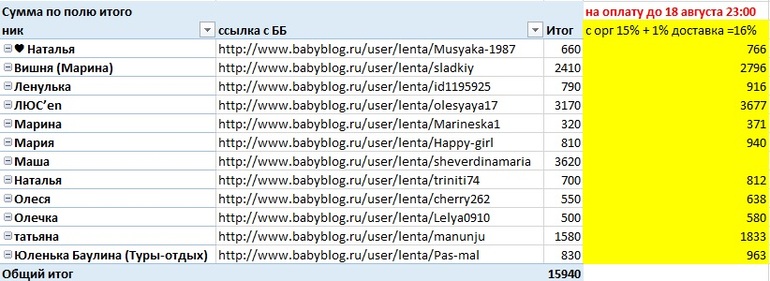 | Марина | http://www.babyblog.ru/user/lenta/Marineska1 | оплачено, ВЫКУПЛЕНО |