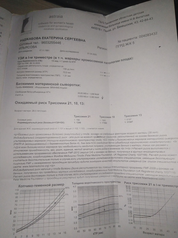 Всем привет девочки!! Может есть кто понимает в скринингах.... У меня первый скрининг занижен (кровь) узи хорошее,,, врач назначила повторное афп хгч... Жду результата.... Второй скрининг 20 уже