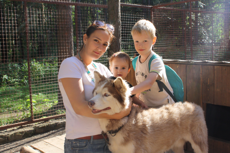 Когда мы проехали нашу деревню, нам нужно было выйти на конечной остановке. А потом еще полкилометра идти пешком. Около дороги был указатель "Питомник аляскинский маламутов" и знак налево. Но по навигатору мы смотрели дома путь и запомнили, что нужно идти прямо. В итоге мы долго шли-шли-шли через лес, пока Яр не сказал нам, что мы не туда идем. Указатель-то был влево! И только тогда до нас дошло, что на табличке было написано про маламутов. А нам-то нужны хаски! В общем, наша деревня, в которой я проводила все каникулы в детстве, оказалась настоящим огромным питомником ездовых собак!
